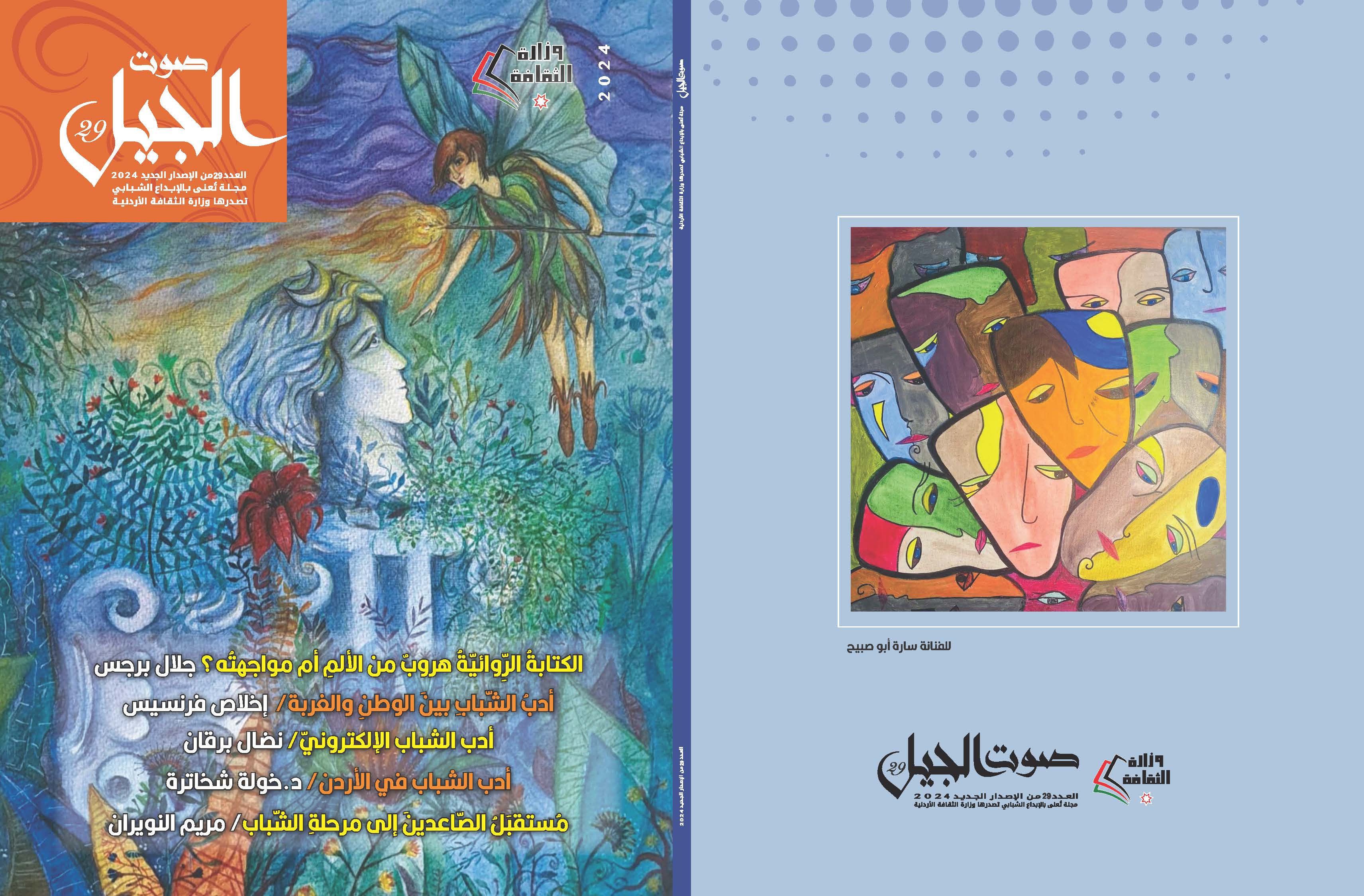 صدر مؤخرا عن وزارة الثقافة العدد 29 من مجلة صوت الجيل المعنية بالإبداع الشبابي، والتي أخذت على عاتقها مهمة كشف النقاب عن عدد كبير من شباب وشابات المملكة الموهوبين والمبدعين، بالإضافة إلى إبراز مواد شبابية، تـُعبر عن آمال وتطلعات الجيل الجديد، اختارتها هيئة تحرير المجلة التي تتألف من: الروائي والشاعر جلال برجس (رئيسا للتحرير)، الشاعر علي شنينات، والأديب والإعلامي جعفر العقيلي، والشاعر تيسير الشماسين (أعضاء هيئة التحرير)، الكاتب محمد المشايخ (مدير التحرير)، فادية نوفل (سكرتيرة التحرير)، د.أنس الزيود: المدقق اللغوي، عبد الهادي البرغوثي: الإخراج الفني.