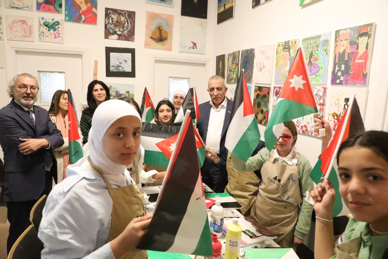 وقدم الأطفال المشاركون في المعرض الذين تتراوح أعمارهم ما بين 6 إلى 18 عاماً، لوحات عبرت عن رمزية العلم الأردني.