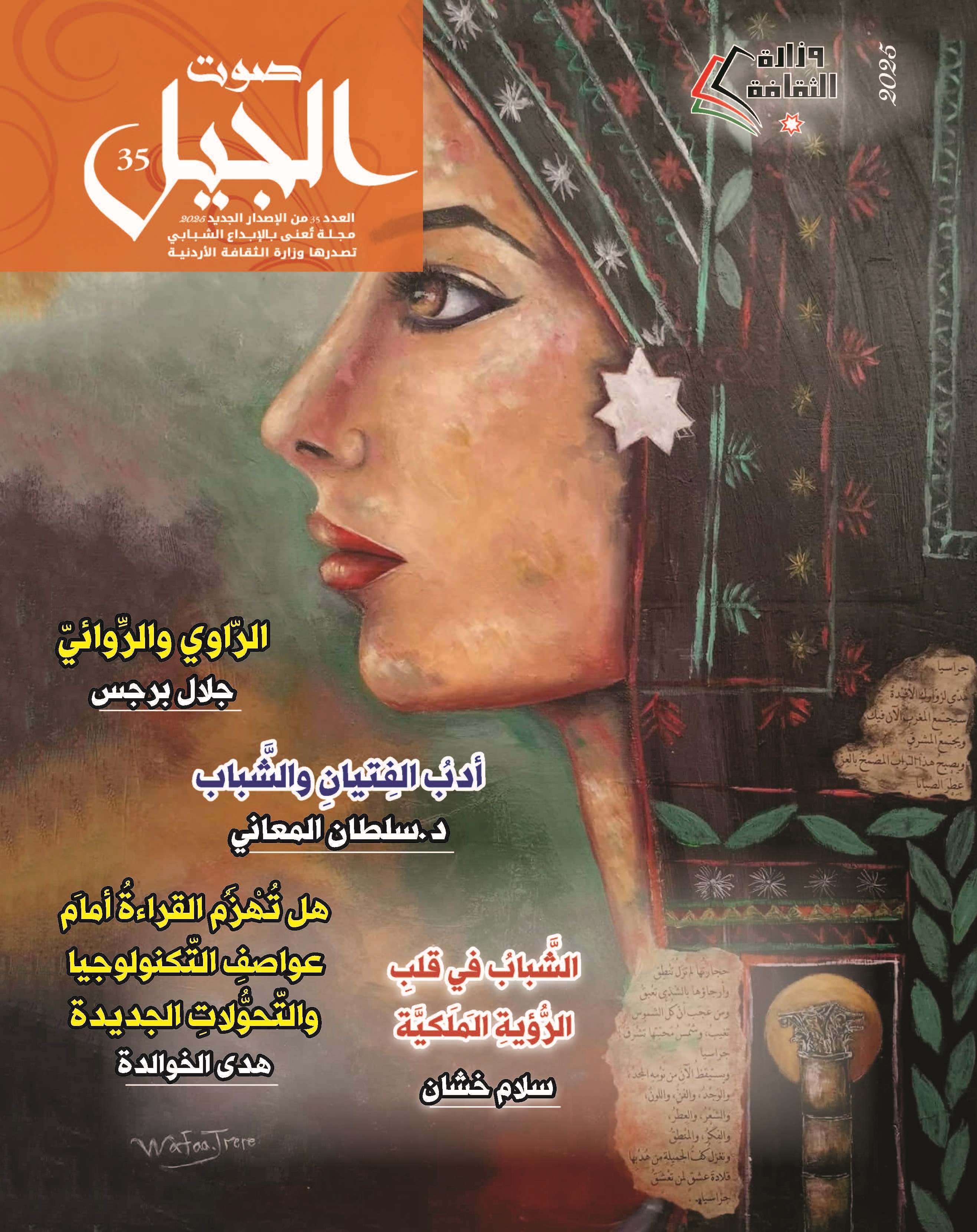 صدر مؤخرا عن وزارة الثقافة العدد 35 من مجلة صوت الجيل، المعنية بالإبداع الشبابي، التي أخذت على عاتقها مهمة كشف النقاب عن عدد كبير من شباب وشابات المملكة الموهوبين والمبدعين، بالإضافة إلى إبراز مواد شبابية، تـُعبر عن آمال وتطلعات الجيل الجديد، اختارتها هيئة تحرير المجلة التي تتألف من: الروائي والشاعر جلال برجس (رئيسا للتحرير)، الشاعر علي شنينات، والأديب والإعلامي جعفر العقيلي، والشاعر تيسير الشماسين (أعضاء هيئة التحرير)، الكاتب محمد المشايخ (مدير التحرير)، فادية نوفل (سكرتيرة التحرير)، د.أنس الزيود: المدقق اللغوي، عبد الهادي البرغوثي: الإخراج الفني.