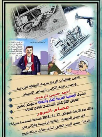 معرض لرسام الكاريكاتير عصام البزور ضمن فعاليات الرمثا مدينة الثقافة 2018