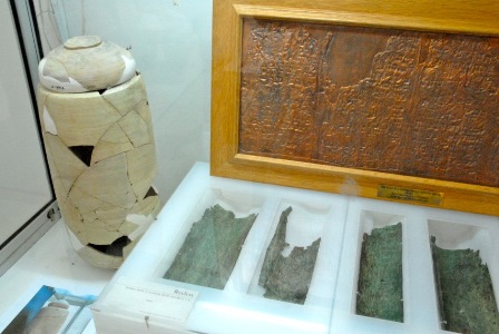 - الملف النحاسي من مخطوطات البحر الميت التي اكتشفها صبي يرعى الأغنام أثناء بحثه عن شاة شاردة في كهف خربة قمران على ضفة البحر الميت.