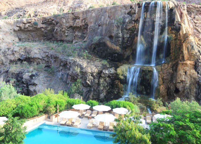 وتقع الحمامات على جنبات وادٍ سحيق ينخفض حتى 300 متر تحت سطح البحر، وتشق المياه الساخنة الصخور مشكلة عيونًا وشلالات راسمة لوحة بانورامية بديعة.