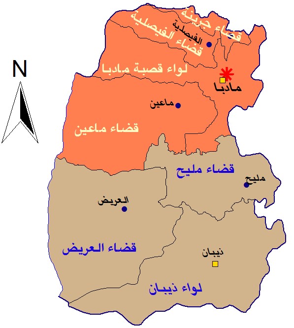 يبلغ عدد سكان أقضية مادبا (جرينه، الفيصلية، ماعين، وبلدة الفيحاء) ما يقارب الخمسين ألف نسمة، على امتداد مساحة 413 كم مربع.
