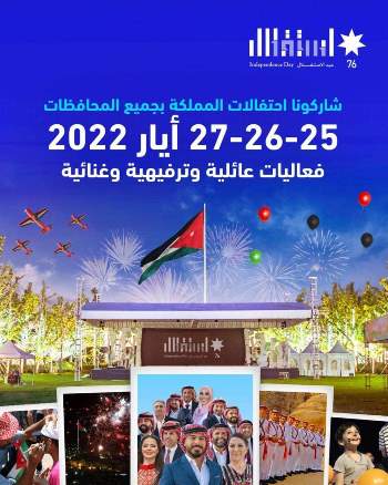 أعلنت لجنة احتفالات المملكة بعيد الاستقلال السَّادس والسَّبعين، عن برنامج الفعاليَّات والأنشطة التي ستقام بهذه المناسبة في جميع محافظات المملكة، بدءاً من يوم الأربعاء المقبل، ولمدَّة ثلاثة أيَّام.